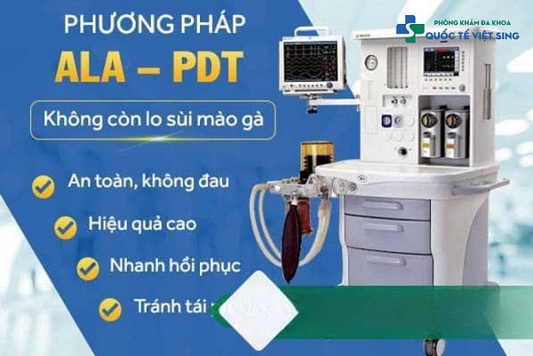 Công nghệ ALA – PDT là phương pháp điều trị sùi mào gà hiện đại, kết hợp giữa chất cảm quang ALA và ánh sáng chuyên dụng, nhằm tiêu diệt tổ chức sùi và ức chế virus HPV.