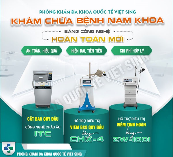 Tại phòng khám đa khoa quốc tế Việt Sing – Bắc Ninh nơi điều trị tất cả các bệnh về Nam Khoa, Phụ Khoa, Bệnh Xã Hội, Vô Sinh Hiếm Muộn. Với đội ngũ y bác sĩ chuyên khoa và cách làm việc chuyên nghiệp, mang đến cho bệnh nhân sự tin tưởng, sức khoẻ và điều trị tốt nhất.