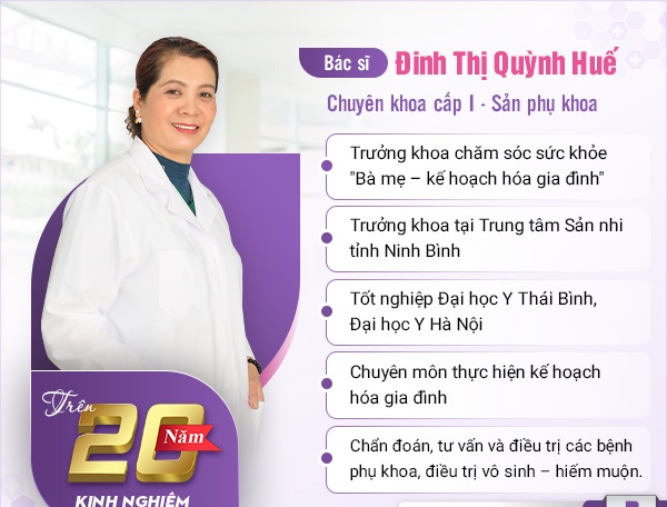 Bác sĩ Huế có hơn 20 năm kinh nghiệm, được nhiều bệnh nhân đánh giá cao khi điều trị viêm nhiễm phụ khoa, tư vấn tiền hôn nhân.