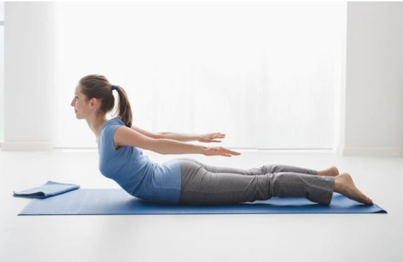 - Nằm sấp, nâng tay và chân lên khỏi sàn